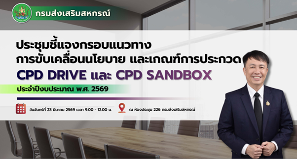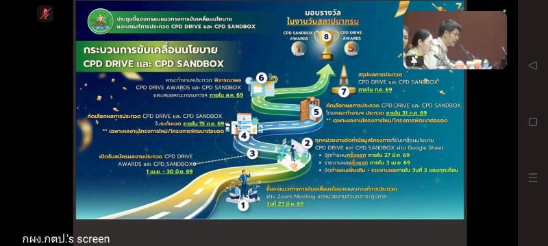 วันจันทร์ที่ 23 มีนาคม 2569 นางสาววิลาวัลย์ แก้วเกาะสะบ้า ผู้อำนวยการศูนย์ถ่ายทอดเทคโนโลยีการสหกรณ์ที่ 20 พร้อมด้วยบุคลากรของศูนย์ฯ เข้าร่วมประชุมชี้แจงกรอบแนวทางการขับเคลื่อนนโยบาย และเกณฑ์การประกวด CPD DRIVE และ CPD SANDBOX ประจำปีงบประมาณ พ.ศ. 2569 โดยมี นายณฤทธิ์ บุญชัย รองอธิบดีกรมส่งเสริมสหกรณ์ เป็นประธานในการประชุม ผ่านระบบ Zoom Meeting ณ ห้องประชุมศูนย์ถ่ายทอดเทคโนโลยีการสหกรณ์ที่ 20 จังหวัดสุราษฎร์ธานี